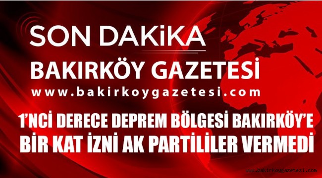 Yerel seçimlerde de İBB Adayı Binali Yıldırım ve bakırköy AKP Adayı Mehmet Umur 'unda seçim taahütleri olan 1 kat imar izni vereceklerini söylemişlerdi.Bakırköy Belediyesi’nin beklenen Kentsel Dönüşüm Planları, İBB Meclisi’nde ‘Ret’ edildi.Komisyon raporunda, Bakırköy için istenen +1 kat ilave ile nüfusun artacağı, artan nüfusun ihtiyaçlarına yönelik donatı alanlarıyla ilgili bir düzenleme getirilmediği gibi pek çok sebep sıralanırken, CHP Grubu dönüşümün 5 binlik planlara uygun yapıldığını, kararın siyasi olduğunu iddia etti...AKP SİYASİ KARAR VERDİ!1 Derece deprem bölgesi olan Bakırköy ilçesindeki kentsel dönüşüm planları Bakırköy Belediye Meclisinde oy birliği ile geçmişti. (AKP-MHP-CHP )Fakat bugün bu kentsel dönüşüm imar planlarında 1 kat imzar izni ,İBB İmar komisyonunda bulunan AKP 'lilerce reddedilmesi ,AKP Bakırköy'ü cezalandırmaya devam ettiğinin en güzel örneklerinden biri oldu.Daha evvelde AKP iktidarı,Yenimahalle Doğum Hastanesini,vergi dairesini,SSK ve devlet dairelerini Bakırköy'den taşımıştı.%80-90 Çürük olan yapılarla Bakırköy ilçesini adeta ölüme terk edilmiş duruma düşürdüler.Şimdi AKP'liler Bakırköy'lülerin yüzüne nasıl bakacaklar,deprem siyaset üstü olduğunu Osmaniye halkına,Yenimahalle halkına,Kartaltepe halkına,Zuhuratbaba halkına,Yeşilköy halkına,yeşilyurt halkına,Ataköy halkına,Florya halkına ,Basınköy halkına nasıl anlatacaklar merak ediyoruz ,...Bakırköy halkına adeta ölüm poşetlerini hazırlayın diyenleri de tarihin sayfalarına bırakıyoruz.Olmadı....Yazıklar olsun....