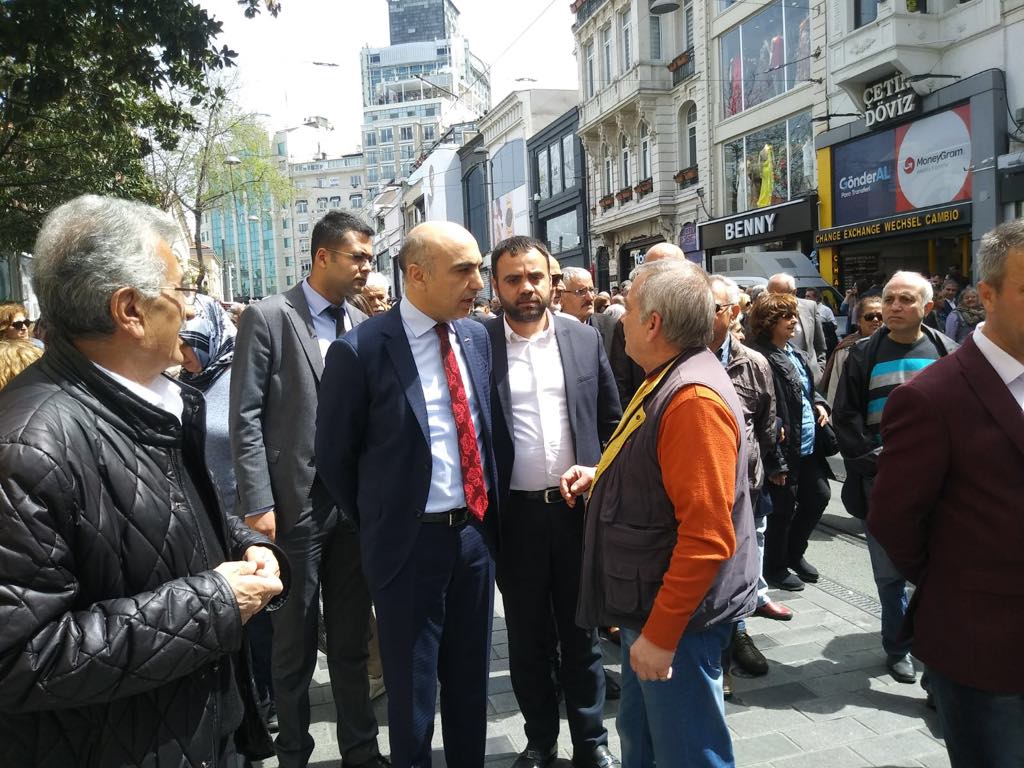 Meydanın saat 11:30 sıralarında kapatılması üzerine CHP İstanbul İl teşkilatı yetkilileri “Biz Taksim’e çıkıp oturacağız. Eğer emniyet güçleri izin vermezse de İstiklal Caddesi’nde toplanıp Galatasaray Meydanı’na yürüyeceğiz” dediler.