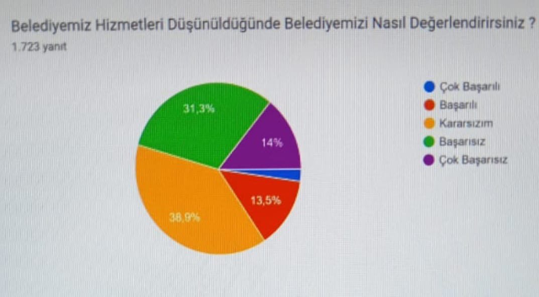 Ankete göre katılımcıların yalnızca yüzde 13,5’i “başarılı”, yaklaşık yüzde 2–3’lük kesimi ise “çok başarılı” yanıtını verdi. Buna karşın vatandaşların yüzde 31,3’ü hizmetleri “başarısız”, yüzde 14’ü ise “çok başarısız” olarak değerlendirdi. Böylece belediye hizmetlerinden memnun olmayanların oranı yüzde 45’i aştı.