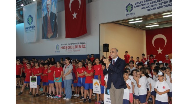 Bakırköy Belediyesi’nin her yıl yaz ve kış spor okullarıyla yaklaşık 10 bin sporcuya ücretsiz hizmet ettiğini belirterek konuşmasına başlayan Bakırköy Belediye Başkanı Dr. bülent kerimoğlu şu konuşmayı yaptı:” Ulu Önderimiz Mustafa Kemal Atatürk’ün dediği gibi Bakırköy’de zeki, çevik ve aynı zamanda güzel ahlaklı sporcular yetiştirmek için çaba gösteriyoruz. Sporun; sağlıklı nesillerin yetişmesi açısından önemini biliyoruz. Ve bu yüzden belediye olarak elimizden gelen desteği artırarak devam ettireceğiz. Yaz spor okullarımızda;15 farklı branşta, uzman eğitmen ve antrenörlerimiz eşliğinde çocuklarımızın güvenli, eğitici ve eğlenceli, anılarında yer bırakan bir yaz geçirmelerini hedefliyoruz. Ayrıca; G.Saray, İstanbulspor, Cedi Osman Basketbol Okulları, Ataspor, Niyazi Mete Spor ve Bakırköy Yıldırımspor Kulüplerine de sağladıkları antrenör katkıları için teşekkür ediyoruz. Kendileri bizlere katkı sağlamalarının yanı sıra yetenekli çocuklarımızı altyapılarına da seçecekler. Yaz spor okulundan yetişen bir çocuğumuzu milli forma altında Bakırköy’ü, Türkiye’yi temsil ederken görmek en büyük dileğimizdir.”