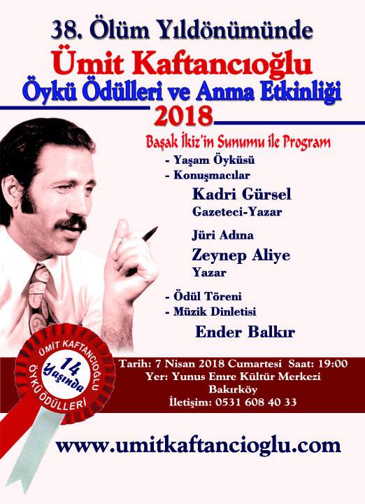 1 Nisan 1980’de katledilen TRT İstanbul Radyosu Prodüktörü, Gazeteci Yazar Ümit Kaftancıoğlu adına Yalın Ses Yayınları tarafından bu yıl 14.'sü düzenlenen öykü yarışması sonuçlandı. Adnan Özyalçıner, Mehmet Güler, Öner Yağcı, Zeynep Aliye, Enver Aysever, Feyza Akbulut Öner ve Hakan Cucunel’den oluşan seçici kurul dereceye giren ilk 10 öyküyü belirledi.