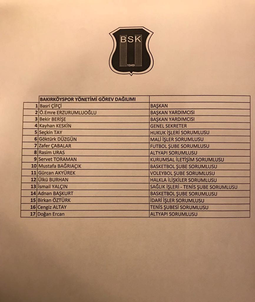 BAKIRKÖYSPOR'DA YENİ GÖREV DAĞILIMI