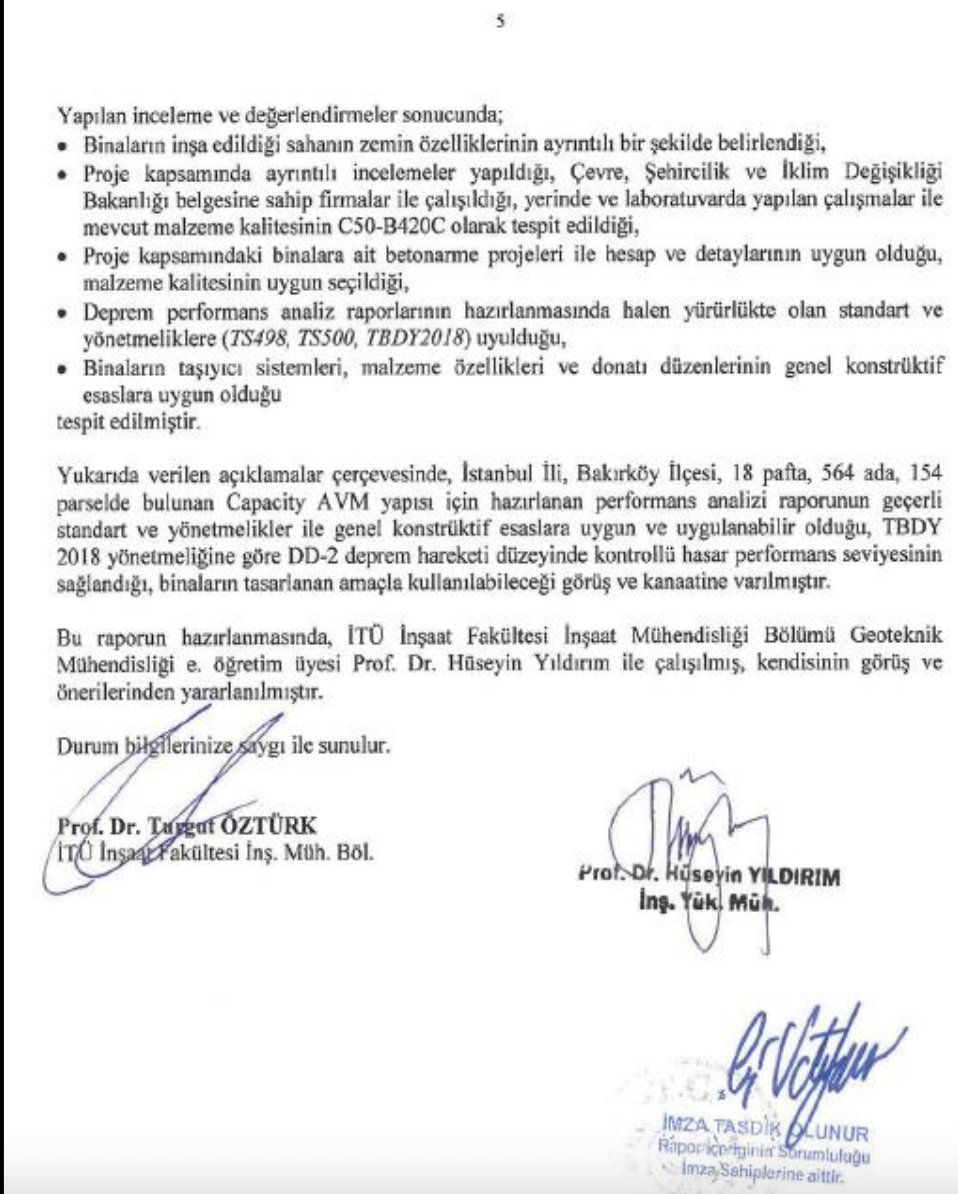 Müştekilerin kendilerine iletilen rüşvet talebini AVM'nin imara aykırılığı olmadığını belirterek reddetmesinden bir süre sonra, tanık Sefer Kocabaş'ın, şüpheli Ali Rıza Akyüz tarafından görüşmeye davet edildiği aktarılan iddianamede, şu ifadelere yer verildi:"Şüpheliler Ali Rıza Akyüz ile Ertan Yıldız ve tanıklar Sefer Kocabaş ve Mehmet İplikçioğlu'nun olduğu görüşmede, örgüt yöneticisi Ertan Yıldız konuya dahil olarak Ali Rıza Akyüz ile birlikte müştekilerin artık 5 milyon dolar vermesi gerektiğini iletmiştir. Müştekiler vekili olan tanık Mehmet İplikçioğlu'nun bunu reddetmesi üzerine Ali Rıza Akyüz artık kendileri ile görüşmeyeceklerini belirterek toplantıyı sonlandırmıştır. Bu görüşmeden bir müddet sonra şüpheli Ali Rıza Akyüz, Sefer Kocabaş'ı arayarak, İplikçioğlu'nun bir diğer şüpheli Süleyman Atik ile görüşmesi gerektiği iletilmiştir. Tanıklar, Maslak'ta bir dairede şüpheli Süleyman Atik iki görüşme yapmışlardır."İddianamede, şüpheli Süleyman Atik'in ilk görüşmede 5 milyon dolar istendiğini ve kendisinin bu gibi konuları çözme konusunda özel olarak yetkilendirildiğini, aracı olup kendi adına bir şey istemediğini, bu gibi görüşmeleri kendisinin yaptığını belirttiği kaydedilerek, "İkinci görüşmede ise şüpheli Süleyman Atik'in bu defa 5 milyon doların taksitle ödenebileceğini, bu paranın da onlar tarafından otopark yapımında kullanılacağını söylemesi üzerine, nakit rüşvet talebinin Mehmet İplikçioğlu tarafından reddedilmesi üzerine şüpheli Süleyman Atik'in 'Bina için deprem konusunda rapor alınacağını, idari para cezası uygulanacağını, deprem riski var diye AVM'ye kimsenin gelmeyeceği.' seklinde tehditlerde bulunduğu anlaşılmıştır." ifadelerine yer verildi.Müşteki Mustafa Keleş tarafından sunulan ses kaydı incelendiğinde, bu görüşmelerden sonra şüpheli Süleyman Atik'in örgütün elebaşı Ekrem İmamoğlu adına 5 milyon dolar nakit rüşvet talep ettiği anlatılan iddianamede, talep edilen rüşvetin bireysel değil, örgütsel bir amaç doğrultusunda istendiğinin değerlendirildiği ifade edildi.İddianamede, şunlar kaydedildi:"Ses kayıtlarından da görüleceği üzere örgüt lideri Ekrem İmamoğlu'nun adı ile müştekilerden defaten 5 milyon dolar rüşvet talep edilmiştir. Müştekilerin önce şüpheli Ali Rıza Akyüz tarafından talep edilen 3 milyon dolar ve sonrasında Ali Rıza Akyüz ve Ertan Yıldız'ın doğrudan ve şüpheli Süleyman Atik aracılığı ile talep ettikleri rüşveti kabul etmemeleri üzerine, örgütün kamu gücünü kötüye kullanmışlardır. Müştekiler üzerinde baskı yapmak amacıyla Bakırköy Belediye Meclisi Kararı ile dönemin kuru ile hesaplandığında yaklaşık 5 milyon dolara denk gelen 197 milyon lira idari para cezası kesildiği ve kamu gücünü kullanarak müştekilerden para tahsil etme çabasına girildiği anlaşılmaktadır." BAKIRKÖY BELEDİYESİ’NDEKİ RÜŞVET VE TEHDİT İDDİALARINA İLİŞKİN GERÇEKLER1. Belediye işlemleri teknik değil, para talebiyle bağlantılı yürütülmüştür: Bakırköy Belediyesi’nin Capacity AVM hakkında düzenlediği “depreme dayanıksız bina” raporu ve 197 Milyon TL’lik encümen cezası, belediye yetkililerinin sistematik rüşvet taleplerinin ardından uygulanmıştır.Bu durum, birden fazla müşteki ve tanığın birbiriyle örtüşen ifadeleriyle doğrulanmıştır: Çetin Gül, Metin Gül, Mustafa Keleş, İlker Keleş, Selahattin Özgül, Alaattin Kameroğlu ve Seyfi Beyaz dahil olmak üzere tüm ortaklar; belediye adına 3 ila 5 Milyon dolar arası nakit talebi yapıldığını, reddedilince cezai işlem başlatıldığını beyan etmiştir.Tüm ifadelerde ortak unsur, para isteklerinin ardından “aksi halde çürük raporu çıkarırız, binayı mühürleriz” tehdididir.Bu beyanlar tehdit–ceza zinciri mantığıyla birbirini desteklemektedir.2. Süleyman Atik’in beyanı iddiaları doğrulamıştır Soruşturma kapsamında etkin pişmanlıktan yararlanmak isteyen Süleyman Atik, – rüşvet talebinin Ali Rıza Akyüz ve Ertan Yıldız koordinasyonunda yürütüldüğünü, – görüşmelerin Maslak 42 rezidansta gerçekleştiğini, – AVM yetkililerinden 5 Milyon dolar istendiğini, – kendisinin ise “bu hukuka aykırıdır” diyerek süreçten çekildiğini itiraf etmiştir. Bu beyanlar, kamera kayıtları, ziyaretçi listeleri ve tarih bazlı delillerle desteklenmiştir. Yani “belediye görevini yaptı, iftiraya uğradı” savı fiilen çürütülmektedir.3. Görüşme ve para talebi kayıtla sabittir Müşteki Mustafa Keleş’in beyanında, Hyatt Otel’de yapılan görüşme ses kaydıyla belgelenmiştir. Yine Sefer Kocabaş ve Asım İplikçioğlu, Maslak 42’deki görüşmeyi doğrulamış; bu ziyaret Arslan Doğan adına kayıtlı giriş loglarıyla örtüşmüştür. Dolayısıyla süreç “soyut iddia” değil, somut ve fiziki delillerle belgelenmiştir.4. Rapor farkı: YTÜ değil, İTÜ raporu bilimsel esaslara uygundur Belediyenin dayandığı YTÜ raporu, binanın ruhsatlı projeleriyle statik tadilatları karşılaştırmadan hazırlanmış, eksik perde duvar iddiasını teknik olarak doğrulamamıştır. Buna karşın, İTÜ tarafından hazırlanan deprem performans raporu: Beton dayanımı (C50–B420C) Taşıyıcı sistem özellikleri TBDY 2018 ve TS500 standartlarına uygunluk gibi kriterleri ayrıntılı biçimde incelemiş, “DD-2 deprem düzeyinde kontrollü hasar performansı sağlanmıştır, bina güvenlidir” sonucuna ulaşmıştır. Yani belediye “çürük bina” gerekçesiyle cezalandırırken, bağımsız mühendislik analizi tam tersini göstermektedir.5. Encümen cezası rüşvetin “yerine” uygulanmıştır Savunmada “197 Milyon TL ceza yasal encümen kararıdır” denilmekteyse de, müştekilerin ifadeleri 