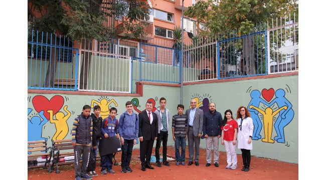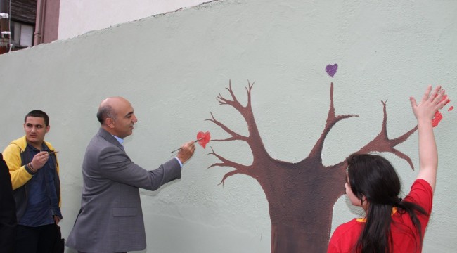 Engelli çocuklar Bakırköy Belediyesi’nin temin ettiği boya ve resim fırçalarıyla okullarındaki resim öğretmenleri ve Bakırköy Belediyesi resim öğretmenlerinin gözetiminde duvarlara resim yapıyor.