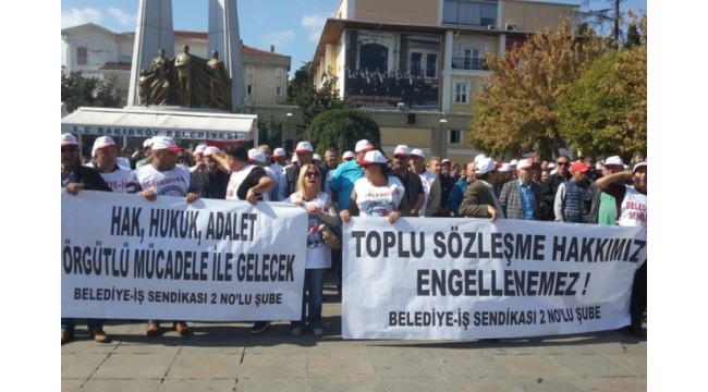 Bakırköy Belediyesi iş yerlerinde, 17 Ekim itibariyle uygulanacak greve ilişkin işçiler, Bakırköy Özgürlük Meydanı’nda basın açıklaması yaptı.