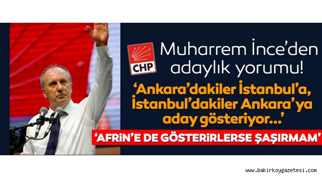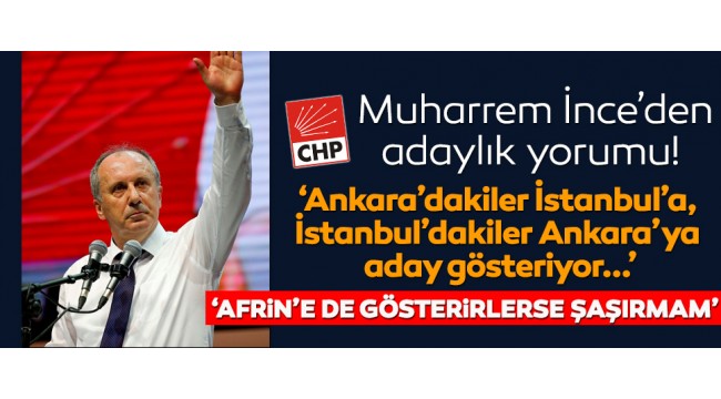 CHP Yalova Milletvekili Muharrem İnce, İstanbul Büyükşehir Belediye Başkanlığı adaylığı ile ilgili açıklamalarda bulundu. CHP’li İnce, ‘Ankara’dakiler İstanbul’a, İstanbul’dakiler Ankara’ya aday gösteriyorlar. Afrin’e aday gösterirlerse şaşırmam’ dedi.