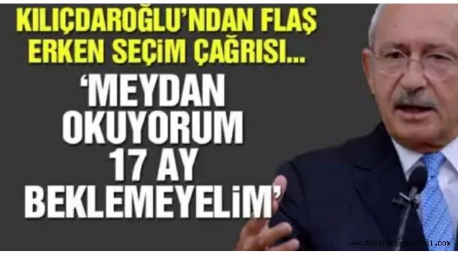KIlıçdaroğlu, konuşmasının sonunda Cumhurbaşkanı ve AKP Genel Başkanı Erdoğan’a da erken seçim çağrısında bulundu. CHP lideri “Meydan okuyorum. Gelin 17 ay beklemeyelim. Buyrun gelin seçimleri erken yapalım.” dedi.