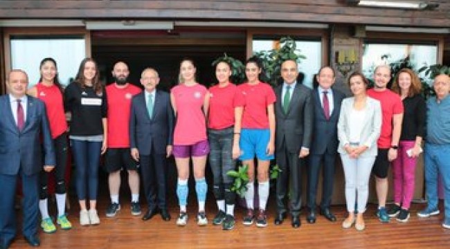 Akif Hamza Çebi Bakırköy Belediye Başkanı Dr. Bülent Kerimoğlu eşlik etti.CHP Lideri Kemal Kılıçdaroğlu ve yanındakiler ,Sultanlar Ligi’ne çıkan Yeşilyurt Spor Kulübü Bayan Voleybol Takımı’nı tebrik ederek,başarılarının devamını dilediler.