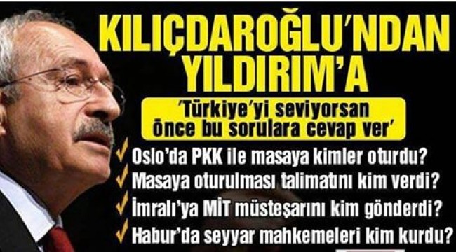 CHP Genel Başkanı Kılıçdaroğlu, Başbakan Yıldırım’a hitaben şu soruları sordu: