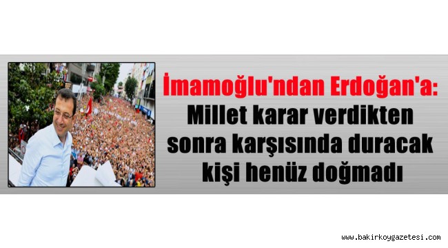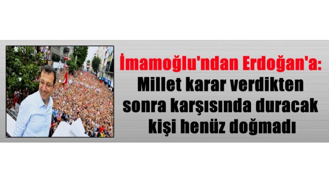 ”SEÇİM BİTECEK; ‘SEÇİMDEN ÖNCE OLUR’ DİYECEKLER!” İmamoğlu, sözlerine şöyle devam etti: ”Onlar ne söylerse söylesin, bu kardeşiniz onlarla hiç muhatap olmayacak. 3-4 günde bile, aklınıza hayalinize gelmeyen iftiralar atacaklar. Her şeyi söyleyecekler. Seçim bitecek, ondan sonra da diyecekler ki, ‘E seçimden önce olur!’ Bana ters, ben yapmam. Yarın utanacağım hiçbir sözü söylemem. Bu arkadaşların aklı böyle. Bu tehditlere, kötü sözlere aldırış etmeyin. Kötü söz sahibine aittir. Yollayın gitsin. Pazar günü, millet karar verecek. Milet karar verdikten sonra onun karşısında duracak kişi, henüz doğmadı. Yok böyle birisi. Millet iradesinin karşısında hiç kimse duramaz. Bizim inancımız tek: Egemenlik kayıtsız şartsız milletindir. Siz, milletçe bir de bu arkadaşlara demokrasi dersi vereceksiniz.”