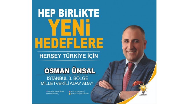 AK Parti İstanbul 3. Bölgeden aday adayı olan Sivaslı genç iş adamı Osman Ünsal Ak Parti’nin ihtiyacı olan taze ve yeni kan olmak konusunda İstanbul 3. Bölgenin en iddialı adayı.