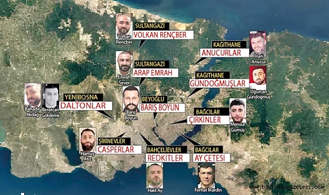 CHP’li Evrim Rızvanoğlu, İstanbul’un çete haritasını açıkladı. Buna göre, Sultangazi’de Arap Emrah ve Volkan Rençber, Bağcılar’da Çirkinler, Yenibosna’da Daltonlar, Şirinevler’de Casperlar, Bahçelievler’de Redkitler, Beyoğlu’nda Barış Boyun, Kağıthane’de ise Anucurlar faaliyet gösteriyor.