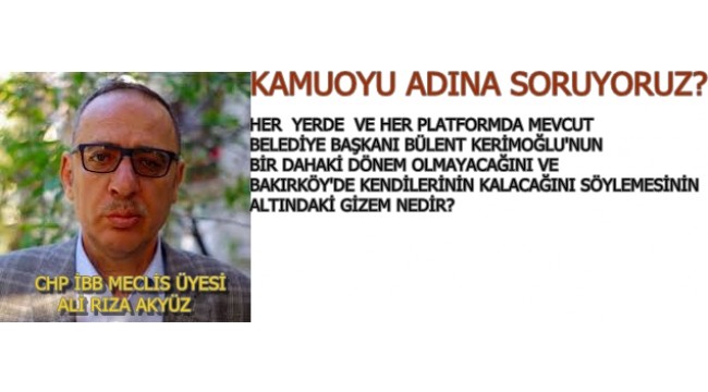 CHP Bakırköy İbb Meclis üyesi Ali Rıza Akyüz ve siyasette yol yürüdüğü ekip arkadaşları (ilçe yöneticileri,meclis üyeleri) Bakırköy de ve İstanbul da çeşitli platformlarda yemekli ,içkili siyaset toplantılarında mevcut ,Bakırköy Belediye Başkanı Dr.Bülent Kerimoğlu'nun ve ekibinin dışarıdan geldiğini ve bir daha ki dönem gideceğini Bakırköy de Bakırköylülerin siyaset yapacağını iddiasını mütemadiyen dillendirmesinin altındaki gerçek nedir?1-CHP Genel Başkanı Kemal Kılıçdaroğlunun kendilerine söylemiş olduğu bir bilgi veyahut bir söz mü var?2-CHP Genel Merkezinde bazı genel başkan yardımcıları yada danışmanlardan mı bir bilgi aldı?3-CHP PM 'den bazı isimlerden mi bilgi ve garanti aldı?4-Yoksa CHP'li Bakırköy Belediye Başkanına bir operasyon yapılacak bilgisine mi haiz?5-Yoksa 2019 kendisi yada ekip arkadaşlarından birisi için asılsız ve irite edici söylemlerde bulunarak itibarsızlaştırma operasyonu mu yapıyor?