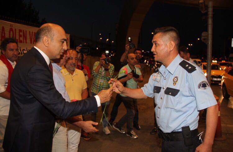 Televizyondan takip etti telefonlarla gerekli devletin bakanlarıyla görüşmelerini yaptı. Kesinlikle kendisini alana indiği andan itibaren orada bulunan partili arkadaşlarımızla Cumhuriyet Halk Partisi’nin darbelere karşı olduğu yönünde açıklamaları oldu. Parti örgütünden karşılamaya gelen insanlara parti örgütünden yöneticilere bulunduğunuz ilçelere ve alanlara gidiniz ve darbe konusunda CHP´nin karşı olduğu yönünde kararlı tutumu ifade edin dedi ben birebir şahidim. Kendisi demokrasiye olan bağlılığını cumhuriyete olan bağlılığını defalarca ifade etti” dedi.