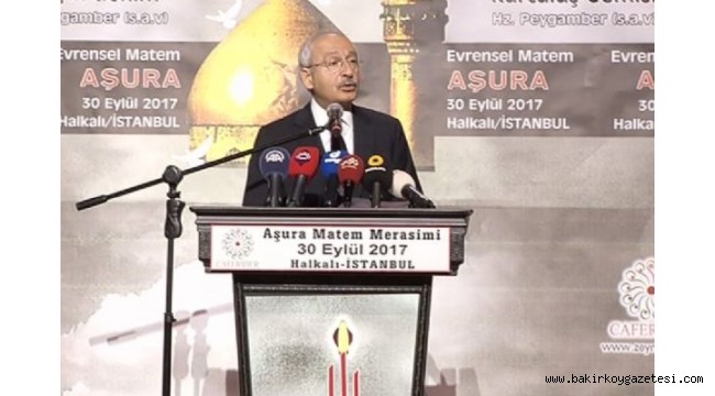 Kılıçdaroğlu törende yaptığı konuşmada, "Kerbela İslam dünyasındaki derin ayrıştırmayı doğuran en önemli olaydır. Günümüz dünyasının en kanlı coğrafyası, yani Ortadoğu'da akan kan aslında dinmeyen Hazreti Hüseyin'in kanıdır.Bu kan zulmedenlerin , hakka, hukuka inanmayanların akıttıkları kandır. Biz Hazreti Hüseyin'in yaşamına ve son nefesini verdiği Kerbela'nın kumuna düşen kanına baktığımızda görmemiz gereken kin ve nefret olmamalıdır" dedi. Hazreti Hüseyin'in tam bir adalet savaşçısı olduğunu söyleyen CHP Lideri Kemal Kılıçdaroğlu, "Bizler, adaletin savaşını verirken, şehit düşen Hz. Hüseyin gibi olmalıyız. Eğer biz adilsek, adalet mücadelemizin bir anlamı vardır.Tüm amalarımızı, lakinlerimizi geride bırakıp, İslam dünyasının sosyal, ekonomik, siyasi ve kültürel geri kalmışlığına karşı ortak çözümler üretmeliyiz.İslam dünyasında öfkeyi değil hoşgörüyü büyütmeliyiz. Tiranlar karşısında susmayı tercih edenleri , zulüm sahipleriyle bir olanları tarih yazmayacaktır. Tarih haksızlığa karşı dilsiz şeytan olmayanları yazacaktır. Allah'ın bizleri zulmün karşısında susturmamasını ve dilsiz şeytan kılmamasını diliyorum" dedi.