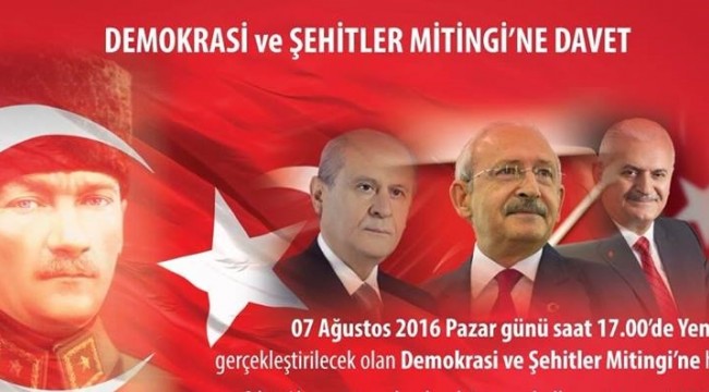 Cumhurbaşkanlığı himayesinde, İstanbul Valiliği ve İstanbul Büyükşehir Belediyesi desteğiyle 7 Ağustos Pazar günü Yenikapı Miting Alanı'nda düzenlenecek "Demokrasi ve Şehitler Mitingi" için hazırlıklar sürüyor.