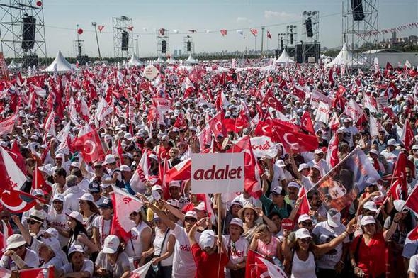 “FETÖ’NÜN SİYASİ AYAĞI ORTAYA ÇIKSIN, GERÇEK DARBECİLER YARGILANSIN DİYE YÜRÜDÜK”Kılıçdaroğlu, “FETÖ’nün siyasi ayağı ortaya çıksın, gerçek darbeciler yargılansın diye yürüdük, 249 şehidimiz, 2301 gazimiz için yürüdük. Şehitler ve gaziler arasında ayrım yapılamaz. Şehitler ve gaziler arasında ayrım yapıldı, ikilik yaratıldı. Ayrım yapılmasın diye yürüdük” dedi.“9 TEMMUZ YENİDEN DOĞUŞUN TARİHİDİR. ADALETİ GETİRMEK İÇİN YÜRÜDÜK”Kılıçdaroğlu, “Özetle bu ülkede adalet için yürüdük. Adaleti getirmek için yürüdük. Takipçisi olacağız. 9 Temmuz yeniden doğuşun tarihidir. 9 Temmuz bir yürüyüşün sonu değil bir özgürlüğün, barışın, bir birlikte yaşam iradesinin ortaya konmasının başlangıcıdır” dedi.CHP Genel Başkanı Kemal Kılıçdaroğlu, 10 maddelik “Maltepe Adalet Çağrısı”nı miting alanından yaptı. İşte Kılıçdaroğlu’nun 10 maddelik çağrısı;“Biz, 15 Haziran’dan bu yana yürüyen on binler, bugün İstanbul Maltepe’de bir araya gelen yüzbinler, milyonlar olarak tüm Türkiye’ye ve dünyaya sesleniyoruz.Biz, sadece ve sadece adalet istiyoruz. Sadece burada bir araya gelenler için değil, sadece bizleri destekleyenler için değil, herkes için adalet istiyoruz.Biz, 25 gündür, on binlerce ağızdan hep birlikte haykırdığımız ‘Hak, Hukuk, Adalet’ talebimizin çok geç olmadan karşılanmasını istiyoruz.Biz, siyasete ve toplumsal yaşama Adalet Yürüyüşümüzün gösterdiği barışçıllığın hakim olmasını istiyoruz.Adalet bir haktır. Adalet hakkımızdır. Biz hakkımızı istiyoruz.Adalet mülkün temelidir. Günümüz Türkiye’sinde mülkün temeli ne yazık ki sallanmaktadır. Gün, temelinde adalet olan yeni bir toplumsal sözleşme yapma günüdür.İşte bu anlayışla bir araya gelen milyonlar olarak Türkiye’nin özellikle son bir yılda içine sokulduğu duruma dair tespitlerimiz ve en acil şekilde yerine getirilmesi gerekenlere ilişkin çağrımız şudur:1. 15 Temmuz darbe girişimini bir kez daha açık ve kesin bir dille lanetliyoruz. 15 Temmuz gecesi TBMM’nin kararlı, onurlu duruşu ve halkımızın sokağa çıkarak FETÖ darbe girişimine karşı direnmesi ülkemizin anayasal ve demokratik kazanımı olmuştur. Biz buna sokağın/halkın 15 Temmuzu diyoruz. Ancak bu darbe girişiminin siyasi ayağının ortaya çıkarılması iktidar tarafından bilinçli olarak engellenmektedir. 249 şehidimizin aziz hatırası ve 2301 gazimiz için Fetullah Gülen Terör Örgütünün siyasi ayağı ortaya çıkarılmalı ve gerçek darbecilerden hesap sorulmalıdır.2. İktidar tarafından 15 Temmuz darbe girişimi fırsat bilinerek, 20 Temmuz darbesi yapılmıştır. 20 Temmuz’da OHAL ilan edilmiş ve TBMM’nin yetkileri gasp edilmiştir. Biz buna Sarayın 15 Temmuzu diyoruz. Bir sivil darbeye dönüşen OHAL uygulamaları yasama, yargı ve yürütme gücünü tek kişide toplamıştır. OHAL derhal kaldırılmalı ve hukuk düzeni evrensel ilkelere uygun olarak yeniden tesis edilmelidir.3. Yargıyı siyasetin emrine vermek demokrasiye ihanettir. Dolayısıyla demokrasinin, can ve mal güvenliğinin vazgeçilmez kuralı olan yargı bağımsızlığı ve tarafsızlığı sağlanmalıdır. Adil yargılanma hakkı eksiksiz bir şekilde uygulanmalıdır. “Kolektif suçö gibi insan haklarına aykırı uygulamalardan vazgeçilmelidir.4. Bugün, OHAL uygulamalarıyla mağdurların yargıya erişim ve sosyal güvenlik hakları ellerinden alınmıştır. OHAL mağdurları adeta “sivil ölümeö terkedilmiştir. Mağdurların yargıya erişim ve sosyal güvenlik haklarını kısıtlayan tüm uygulamalara hukuk devletinin gereği olarak son verilmelidir.5. 20 Temmuz sivil darbesinden sonra, 15 Temmuz darbe girişimiyle veya onun arkasındaki örgütle hiçbir ilişkisi bulunmayan, ama sırf hükümete muhalif görüldüğü için bütün haklarından yoksun kılınan akademisyenler ve diğer kamu görevlileri görevlerine iade edilmelidir. Anayasa Mahkemesinin içtihatları dikkate alınarak, tutuklu milletvekilleri derhal serbest bırakılmalıdır.6. 150’nin üzerinde gazetecinin hapiste olduğu bir ülkede demokrasiden söz edilemez. Sadece mesleklerini yaptıkları için tutuklanan gazeteciler derhal serbest bırakılmalı, medya üzerindeki tüm baskılara son verilmelidir. Düşünceyi ifade özgürlüğünün önündeki tüm engeller kaldırılmalıdır.7. OHAL koşullarında, serbest tartışmanın yapılamadığı bir ortamda ve üstelik “devletin bütün imkânları seferber edilerek gerçekleştirilen Anayasa değişikliği gayrimeşrudur. Toplumun ihtiyaçlarını karşılamayı amaçlayan anayasa yerine, bir kişinin beklentilerine yanıt veren bir Anayasa değişikliği Yüksek Seçim Kurulu’nun yasadışı kararıyla yürürlüğe konulmuştur. Bu bir ‘mühürsüz’ seçimdir. Türkiye gayrimeşru bir anayasa ile yönetilemez, yönetilmemelidir.8. Demokratik parlamenter sistem üzerindeki her türlü vesayet kaldırılmalıdır. Din ve vicdan özgürlüğünün güvencesi olan, insan haklarına dayalı demokratik, laik, sosyal hukuk devleti güçlendirilmeli, liyakat esası kamuda göreve başlama ve yükselmede esas alınmalıdır. Eğitimde laiklik ilkesinin aşındırılmasına son verilmeli ve toplumsal adaletsizliği yeniden üreten eğitim politikaları değiştirilmelidir.9. Sadece hukuk alanında değil, toplumsal yaşamın bütün alanlarında yaygın bir adaletsiz düzen devam etmektedir. İşsizlik, yoksulluk, insanca yaşam ücretinden yoksunluk, örgütsüzlük, ayrımcılık, yaygın şiddet, terör gibi çok geniş bir yelpazede yaşanan toplumsal adaletsizliklerin giderilmesi için ortak irade geliştirilmelidir. Toplumsal barışımızı bozan tüm antidemokratik uygulamalara eşit yurttaşlık temelinde son verilmelidir. Toplumsal adaletsizliğin en vahim görünümlerde