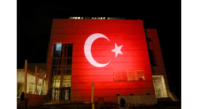 Bakırköy Belediyesi Leyla Gencer Opera ve Sanat Merkezi'ne Türk Bayrağı yansıtıldı; kırmızı beyaza büründü.