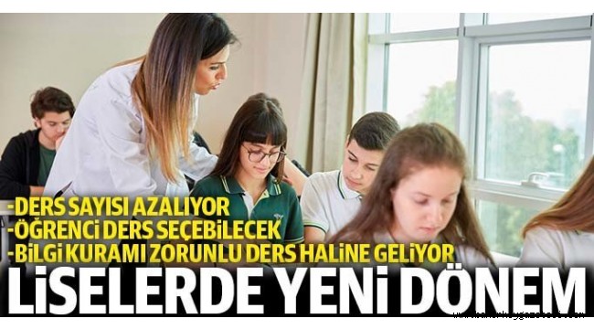 -12. Sınıflarda Ders saatleri azaltılıp destek çalışmaları geliyor.-Her öğrenci üniversitedeki gibi kendi istediği dersleri seçebiliyor.-Yeni lise sistemi ilk olarak 2020-21 yılında 9.sınıflardan başlıyor. Kademeli geçiş olacak.Bilgi Kuramı zorunlu ders haline geliyor.